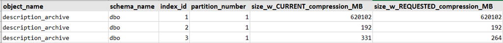 Well … bummer! Looks like no savings with ROW compression, and running the same query above with PAGE compression did not look much better. Why? It seems like a NVARCHAR(MAX) column full of HTML would be a great candidate for compression.