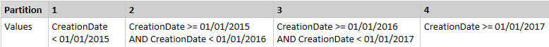 AS RANGE RIGHT FOR VALUES ('20150101', '20160101', '20170101');